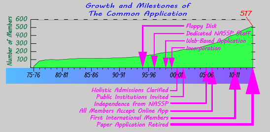 It started out with paper, of course, and then a floppy disk version of the Common Application was developed for the 1994-95 school year. Obviously that didn’t last very long, and the first Web-based version was launched in 1998-99. Since then, the software has gone through four generations of development, and this school year, the paper application has finally been retired.