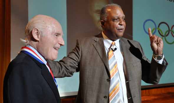 Dr Thornton, right, honors US Sen Herb Kohl in Aug 2012 (Photo: Milwaukee Public Schools)
