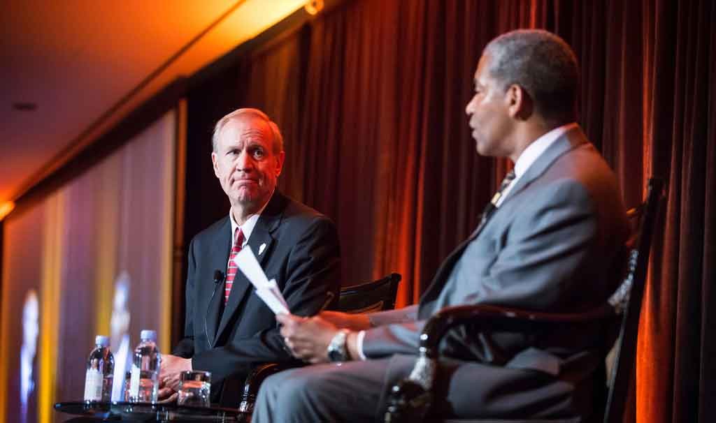 Bruce Rauner, left, at a Metropolitan Planning Council luncheon in 2014 (MPC via Flickr Creative Commons)