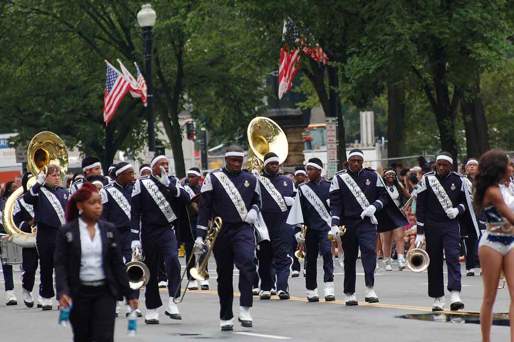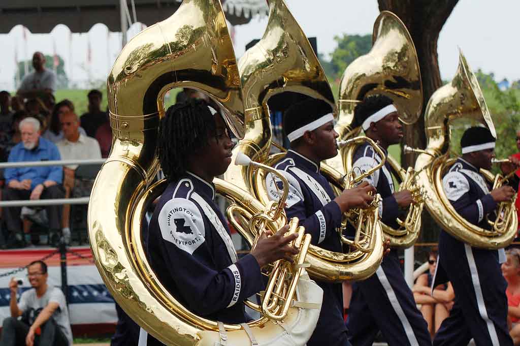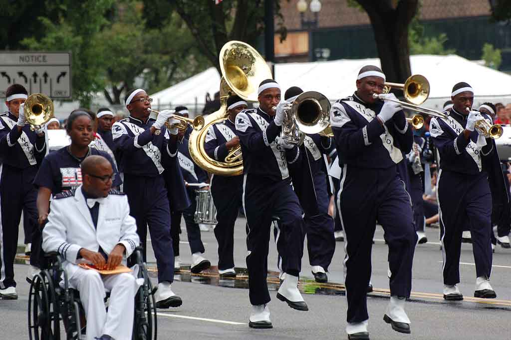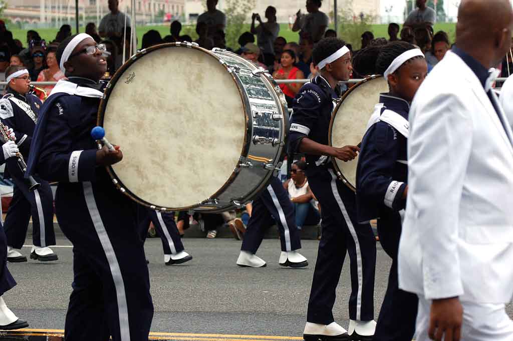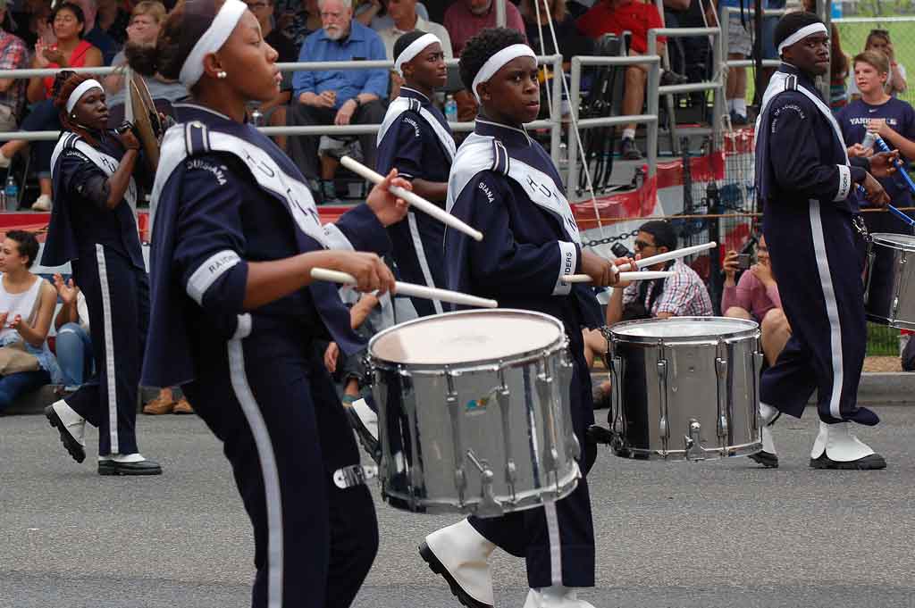 Suggested caption for all photos: WASHINGTON (July 4) — The Raider Jukebox Marching Band from Huntington High School in Shreveport, La., marched in the National Independence Day Parade down Constitution Avenue, in celebration of the nation’s 239th birthday. (Voxitatis)