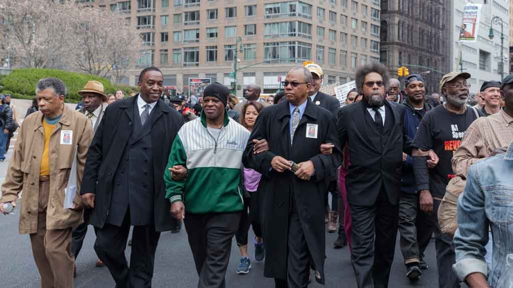 Cornel West (5th from left) walks with protesters against police brutality in New York, April 14 (scarletsails/Thinkstock)