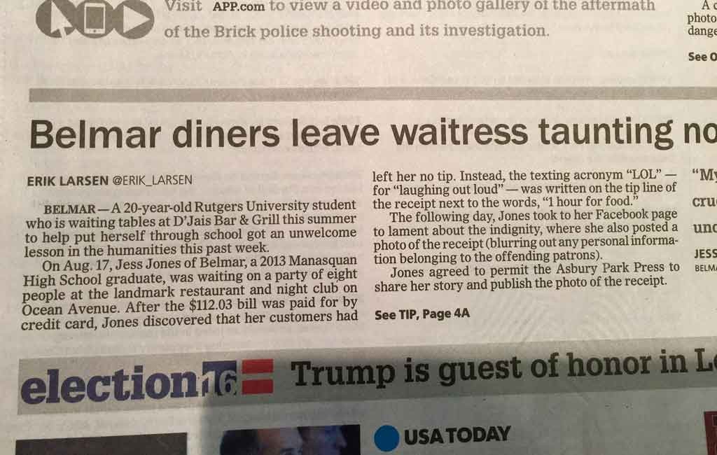 As shown in the article excerpt from New Jersey, college students often rely on tips to put themselves through school or help them pay for college or living expenses while they’re in school. But: