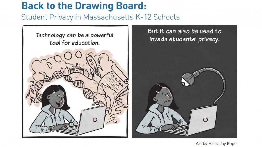As we collect and report data on how college-ready our students are, the ACLU of Massachusetts has produced a report providing great detail on the status of student data privacy in K-12 schools. The Lower Merion School District in Pennsylvania, the report points out, at the start of the 2009-2010 school year, “gave students MacBooks loaded with spyware without telling the students or their parents. The school used this spyware to capture thousands webcam images, screenshots, and personal communications from at least two students.”