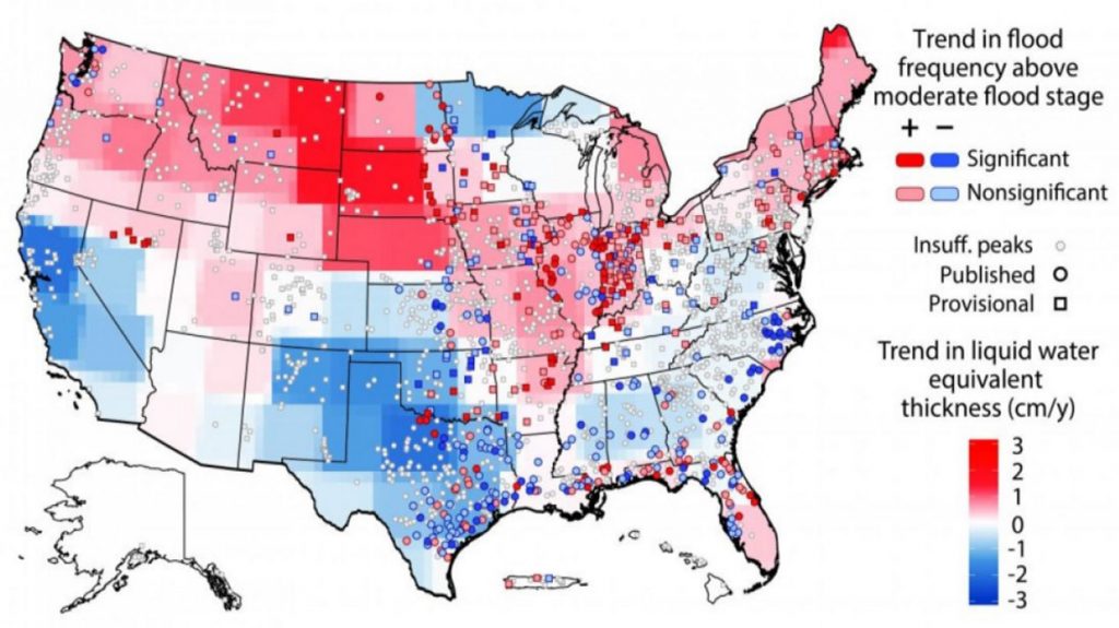 The risk of flooding in the United States is changing regionally, and the reasons could be shifting rainfall patterns and the amount of water in the ground.