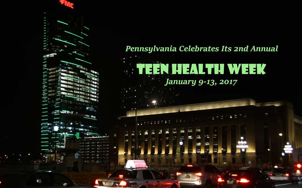 PHILADELPHIA (Jan. 13) — Lime green is Laura Offutt’s favorite color. The physician who runs Real Talk with Dr Offutt, the non-judgmental, ad-free website focused on helping teenagers stay healthy, convinced owners of a few buildings on this historic skyline to light them up this week and show teens that although some adults may write off teen health issues as being imaginary, plenty of adults, especially in this state, do listen to kids and honor—even celebrate—the importance of teen-specific health issues.