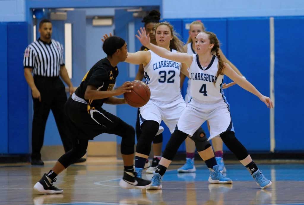 Clarksburg girls’ basketball team, in white (Tony Kosiyachinda / student newspaper)