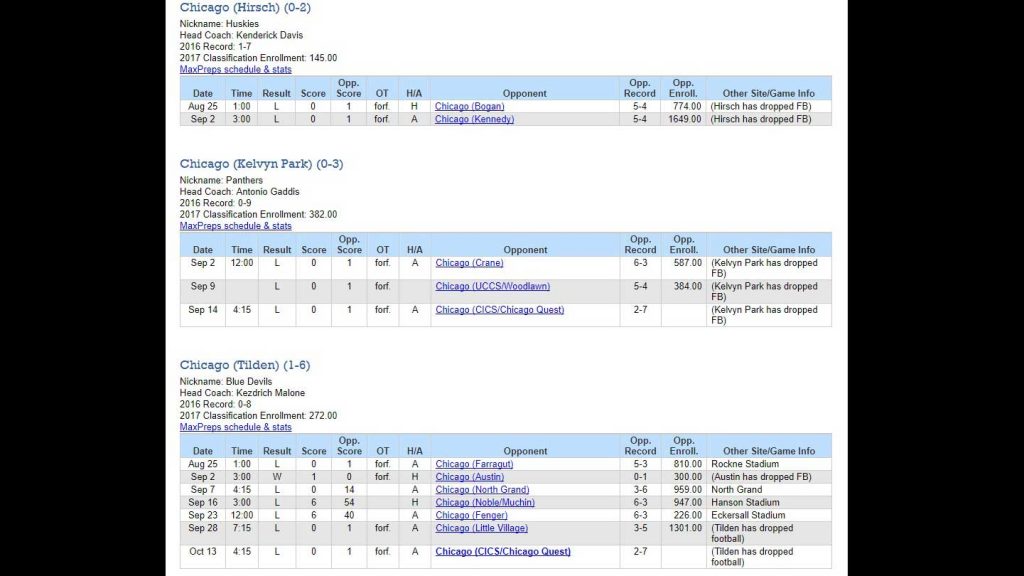 After a few forfeits, schools just dropped football (IHSA/Intra-City 4 conf.)