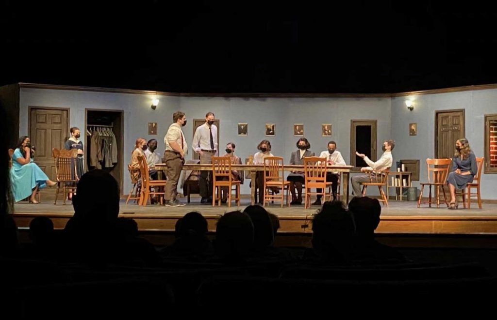 The play was adapted from the classic 1950s courtroom drama “12 Angry Men,” but it was chosen, Allison noted, for its simplicity and the ease with which it can be adapted for both live and recorded performances. It’s easy to shift because the play has only one set: the inside of a jury deliberation room.