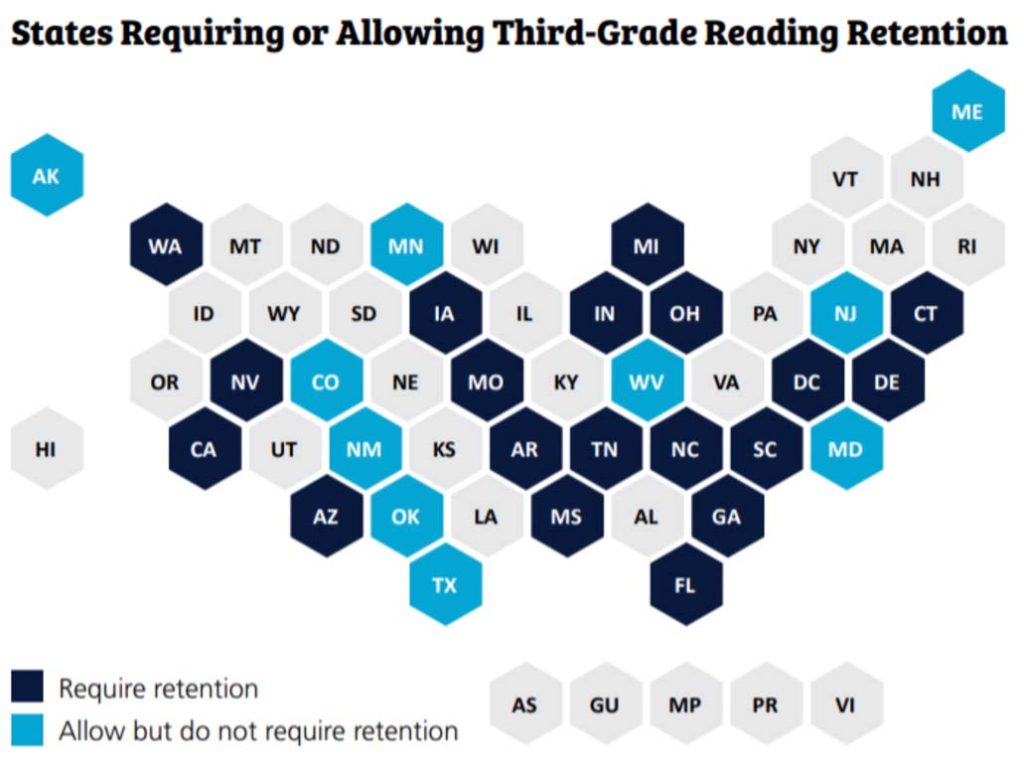 Based on outdated data, several states in the US allow or require students who fail a reading test in third grade to be held back. In Michigan, though, a law was passed and signed in March 2023 that removed the requirement to hold students back in third grade.