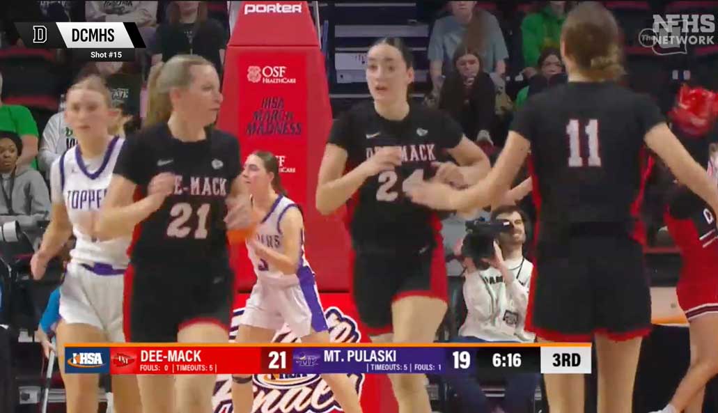 Deer Creek-Mackinaw (black uniforms) vs. Mt. Pulaski1A Turning Point: Dee-Mack Pulls Away