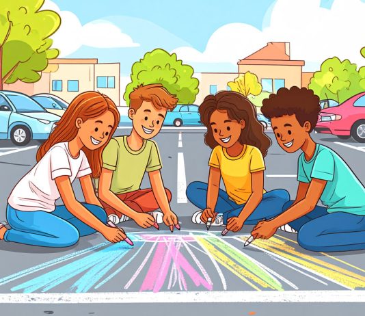 Chalking parking spots at Amador Valley